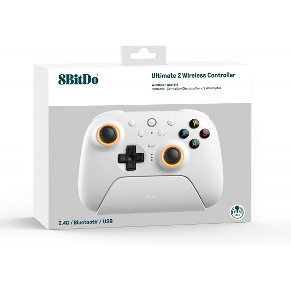 Manette Sans fil 2.4G 8Bitdo Ultimate 2 Blanche pour PC Windows 10/11 et Android, avec TMR Joysticks