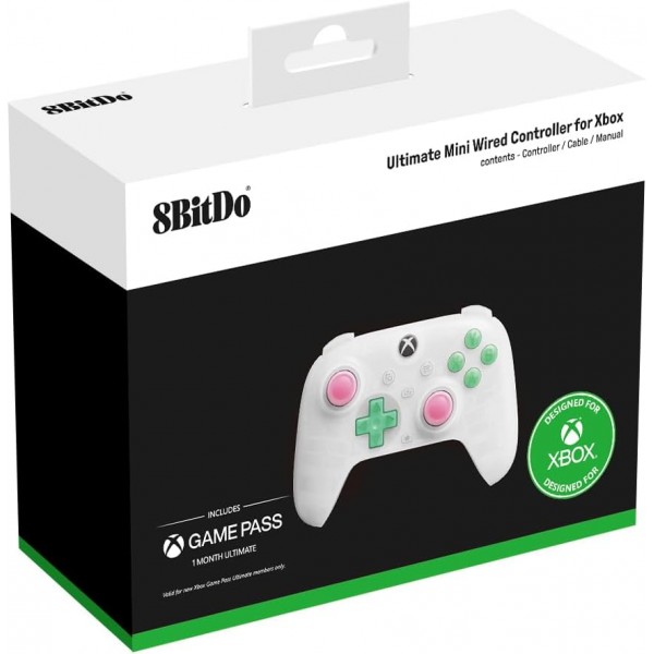 Mini Manette Filaire 8Bitdo Ultimate Blanche Transparent pour Xbox Series X|S, Xbox One et PC Windows 10/11