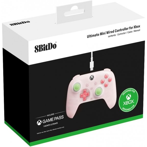 Mini Manette Filaire 8Bitdo Ultimate Rose Transparent pour Xbox Series X|S, Xbox One et PC Windows 10/11