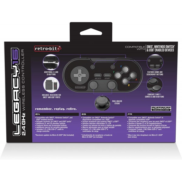 Manette Retrobit Legacy 16 sans Fil Noir pour Switch/PC/Steam/Raspberry Pi/Snes/Android 2,4g