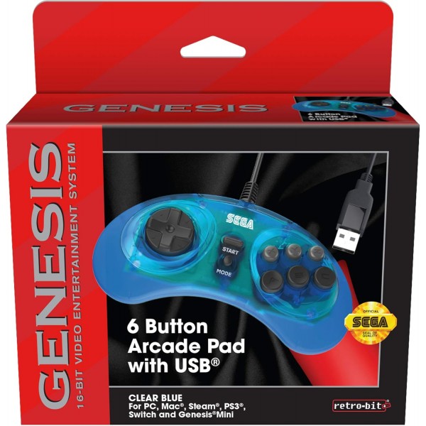 Manette Filaire Retro-Bit Official Sega Genesis USB pour Nintendo Switch, PC Windows, Sega Genesis Mini, Mac, Steam