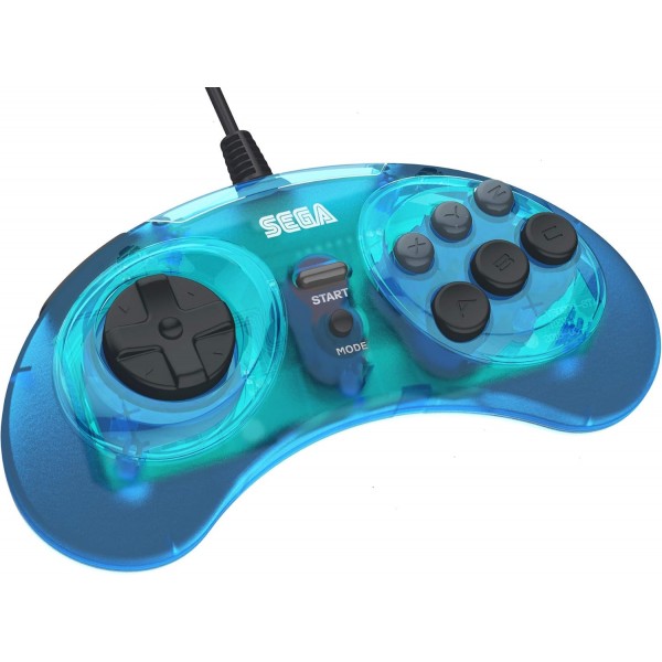 Manette Filaire Retro-bit Sega Genesis Mega Drive 8 Button Arcade USB Pad Bleu transparent