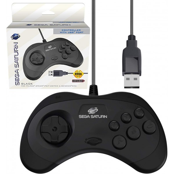 Manette Filaire Sega Saturn Model 2 USB Noire Retro-Bit