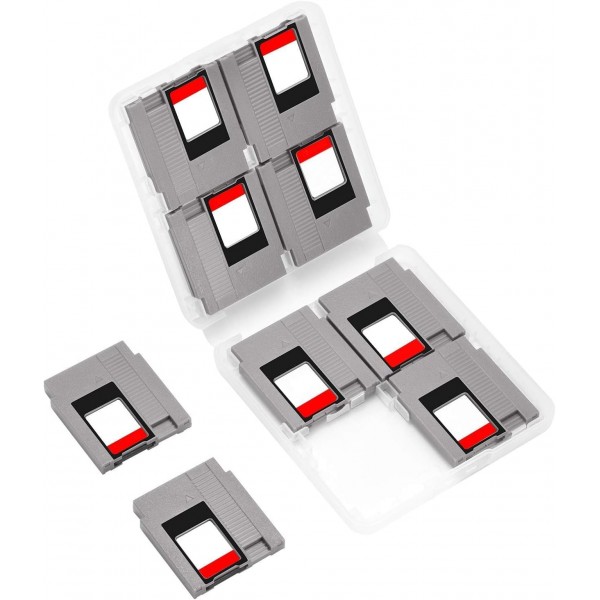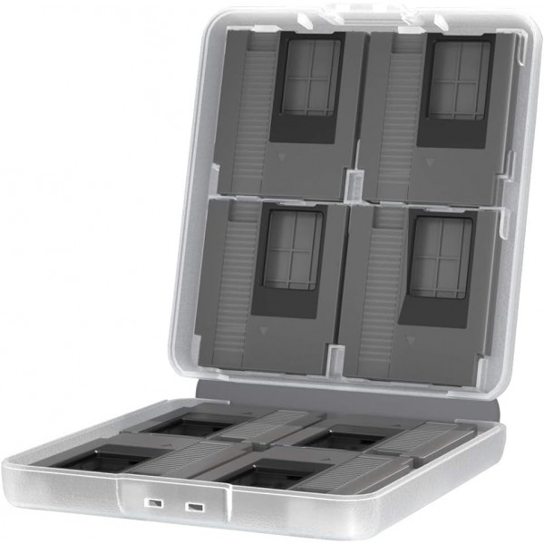 Comprend 8 boîtiers pour mini-cartouches NES et 1 grande mallette de transport transparente.